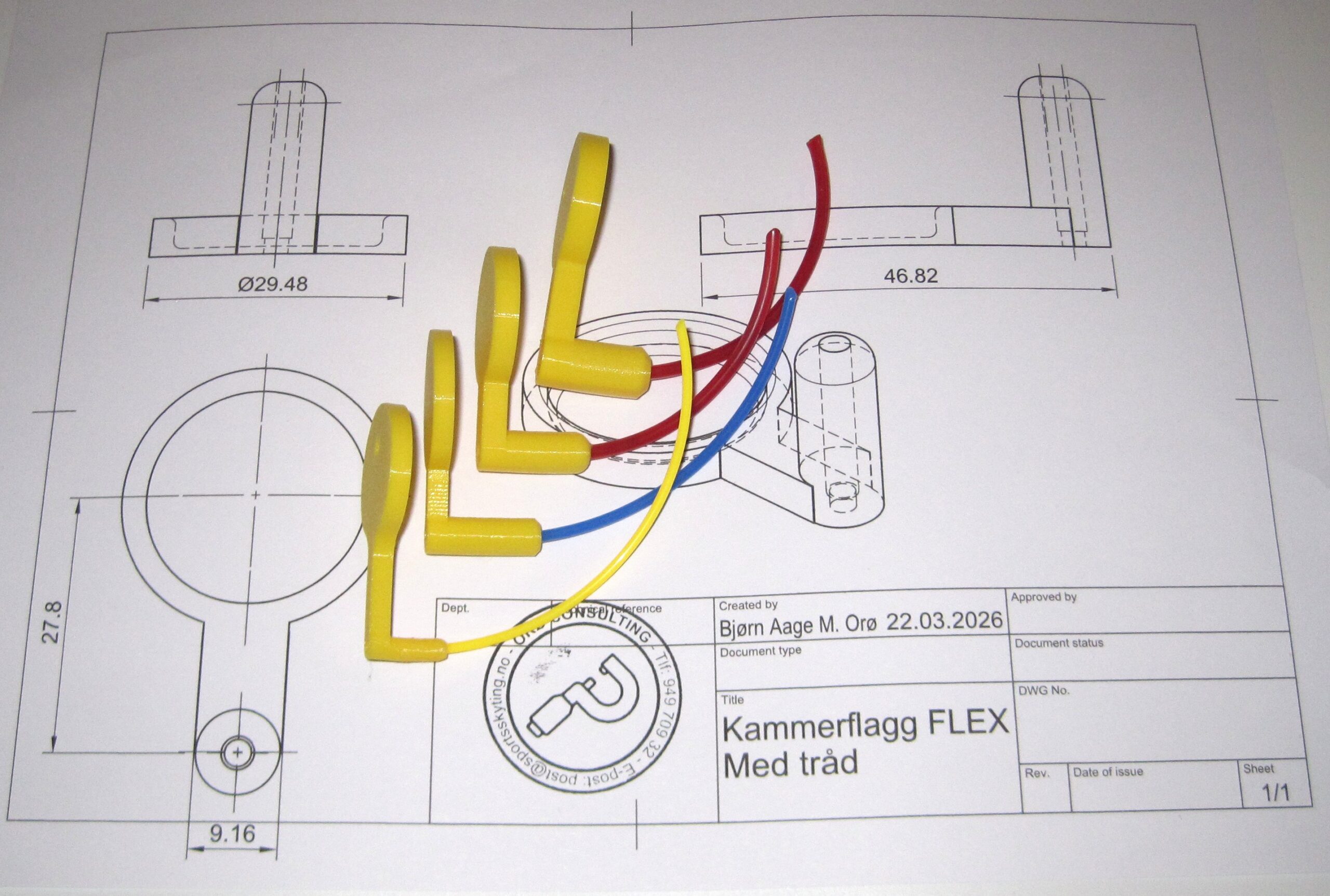 Kammerflagg laget i plast med “fleksibel” tråd som gjør at flagget blir sittende i kammeret selv om sluttstykket er åpent. Meget enkel og pratisk å bruke