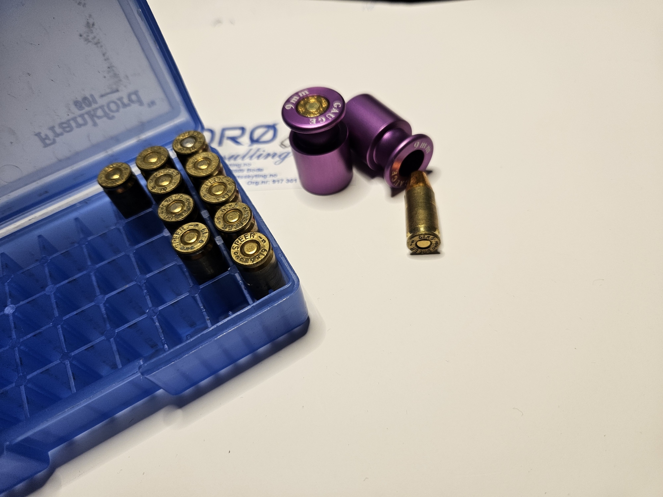 kammertolk til 9×19 mm. Gjør at du kan sjekke dine hjemmelagde patroner. passer de i toklen – passer de i ditt våpen (alle sjekker jo hjemmeladningene før feltstevnet).