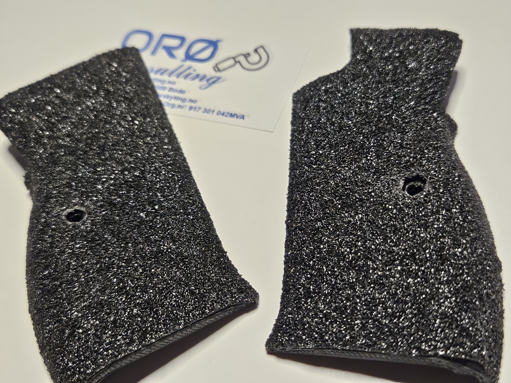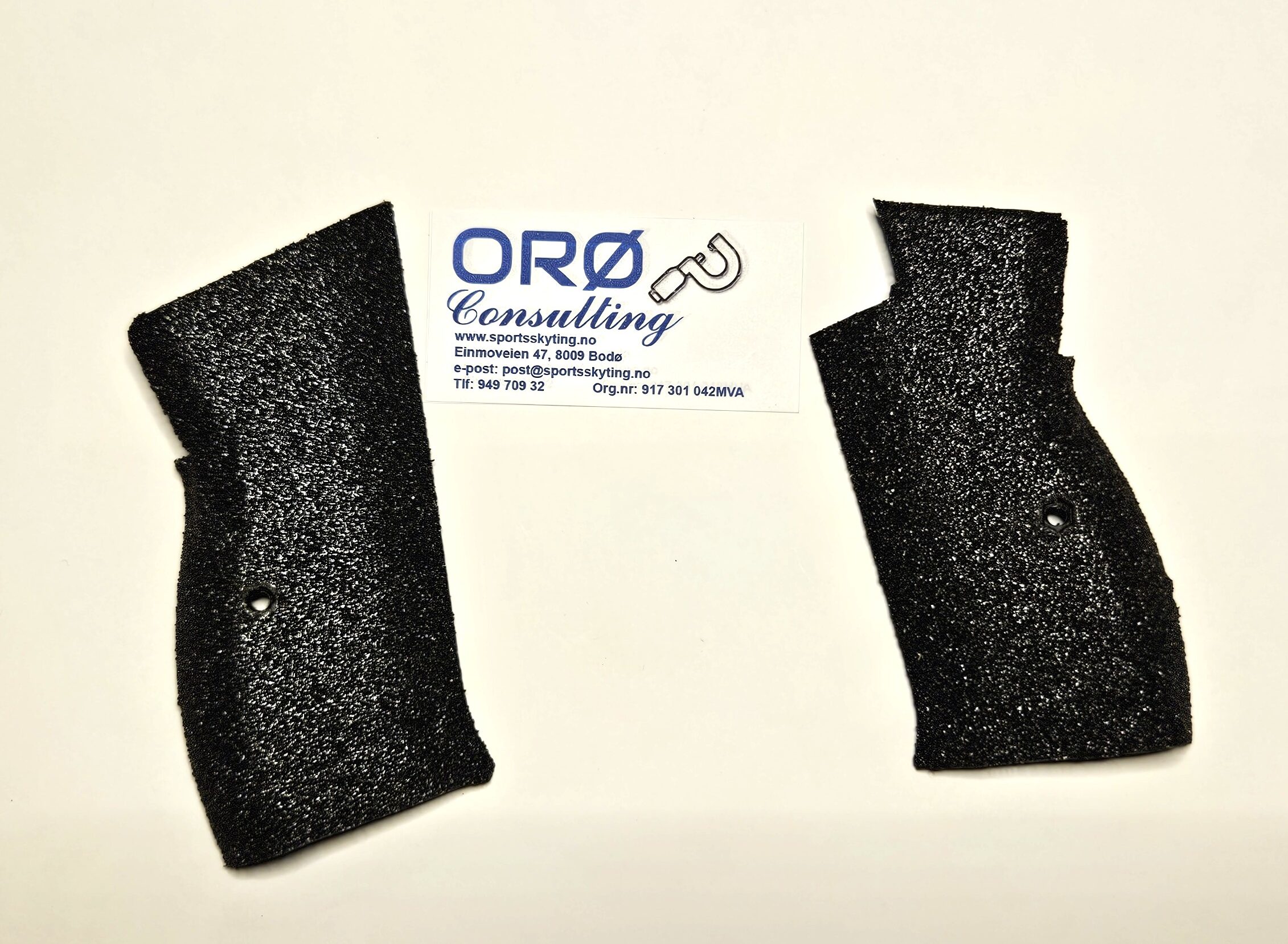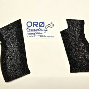 Platene er påsatt «Grip-tape» som gjør at skjeftet virkelig sitter «fast» i hånden under skyting